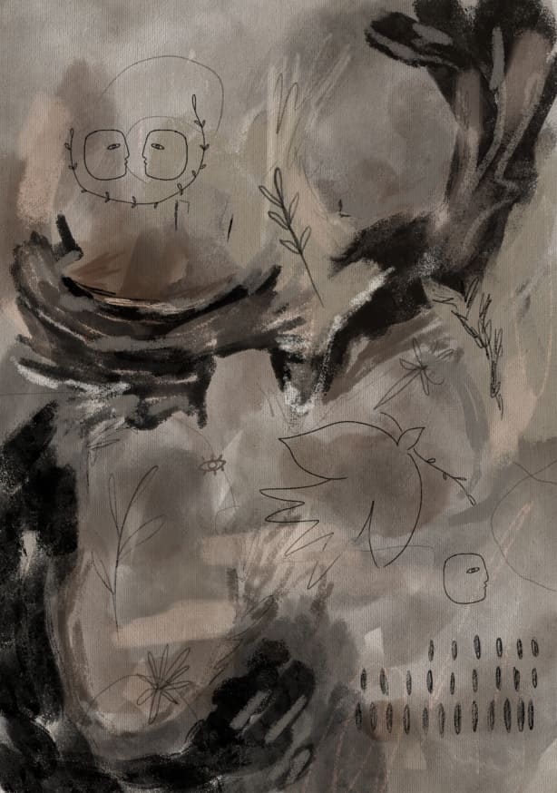 • Canvas: moldura em madeira natural tingida, com veios orgânicos visíveis