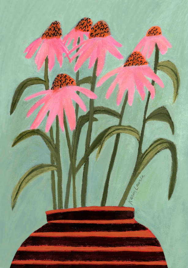 Quadro Pink Coneflowers In Orange And Black Striped Vase