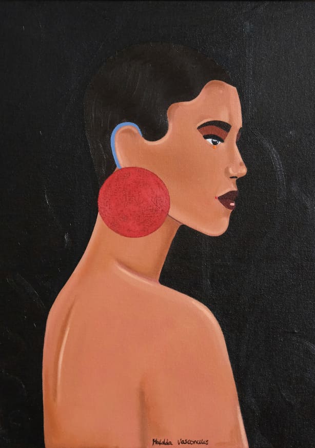 • Canvas: moldura em madeira natural tingida, com veios orgânicos visíveis