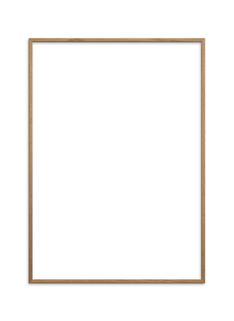 • Canvas: moldura em madeira natural tingida, com veios orgânicos visíveis