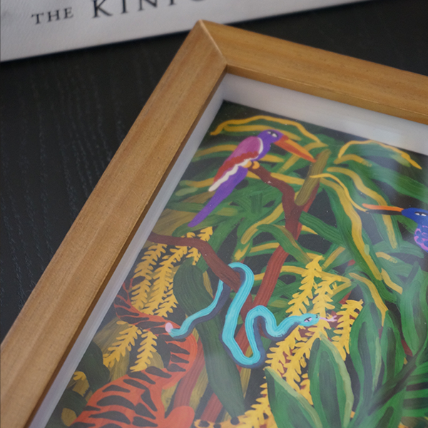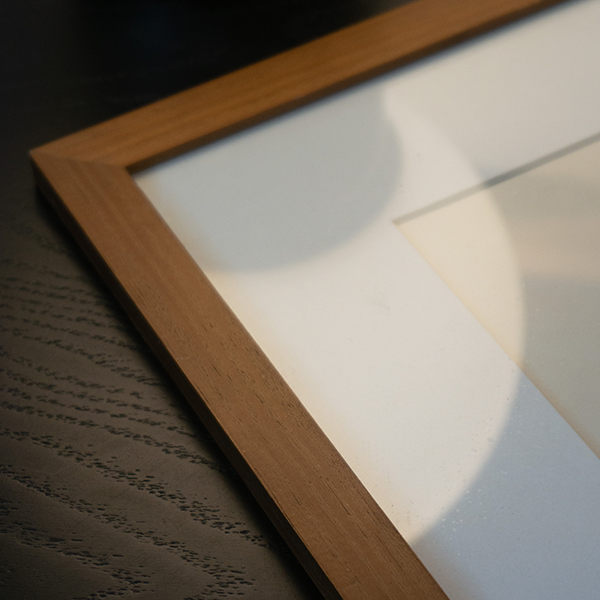 Produzidas em madeira maciça, nossas molduras amadeiradas exibem veios naturais e evitam o aspecto sintético do laminado adesivo. Todas as artes são fixadas em fundo de foamboard, base inerte de PH neutro que não acidifica o papel, assegurando longevidade à obra.