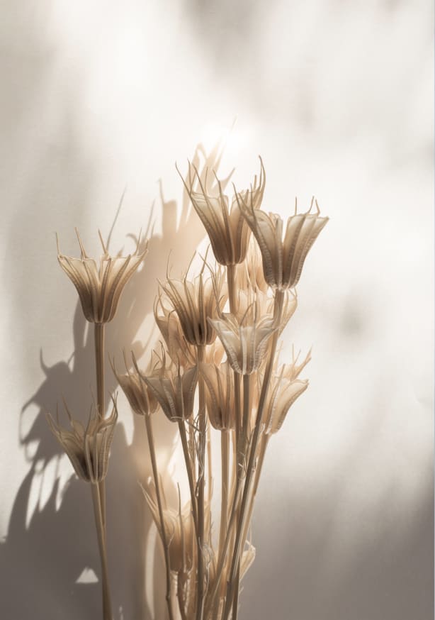 • Canvas: moldura em madeira natural tingida, com veios orgânicos visíveis