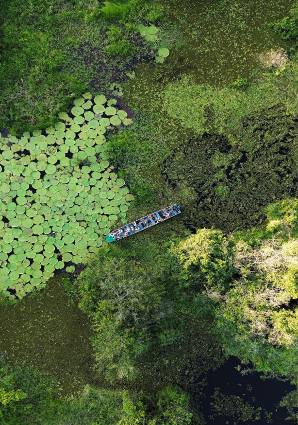 • Canvas: moldura em madeira natural tingida, com veios orgânicos visíveis