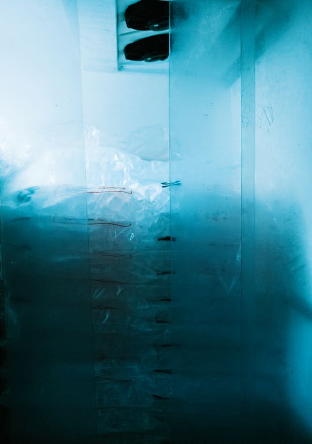 Exibição imersiva com recuo de 1,5 cm entre arte e vidro