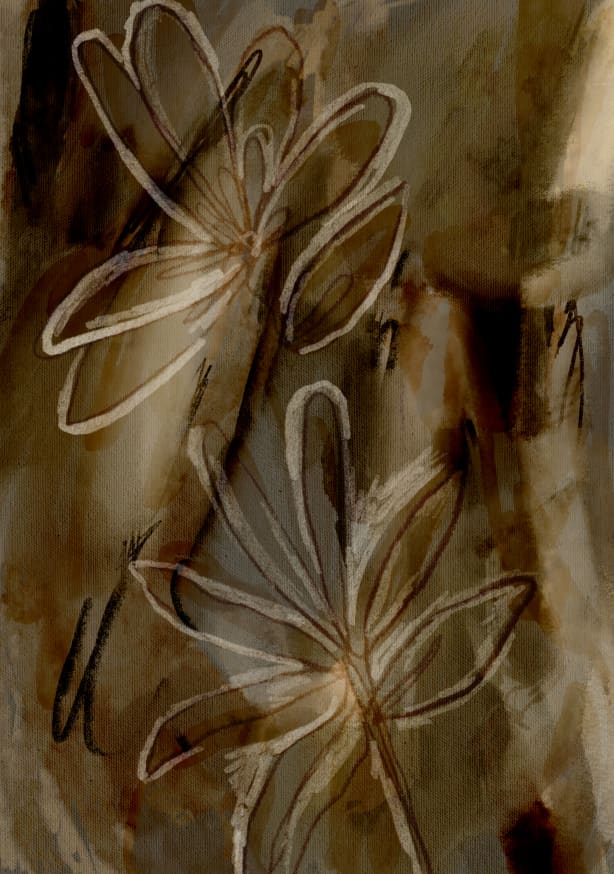 • Canvas: moldura em madeira natural tingida, com veios orgânicos visíveis