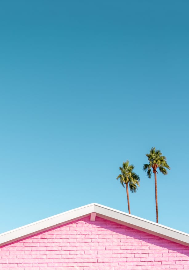 Quadro Pink Roofline With Palm Trees By Tom Windeknecht