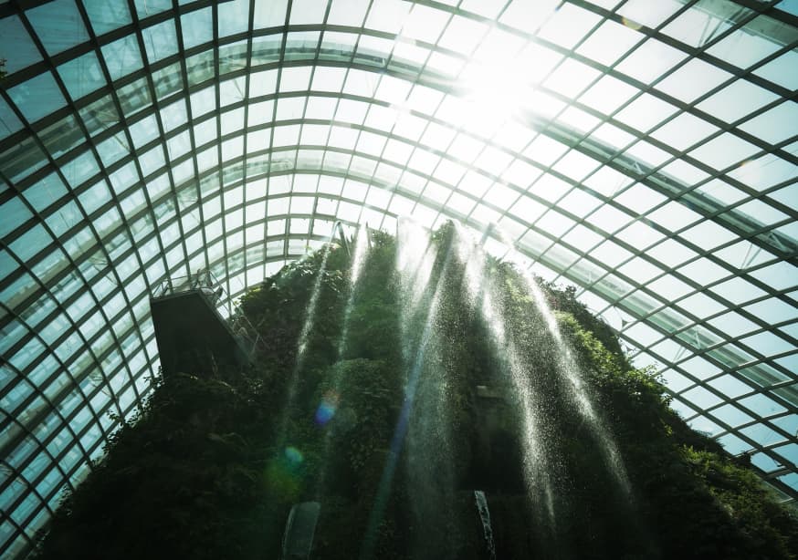 Exibição imersiva com recuo de 1,5 cm entre arte e vidro