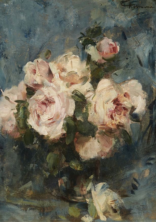 Quadro Still Life With Roses In A Glass Vase By Charles Hermans