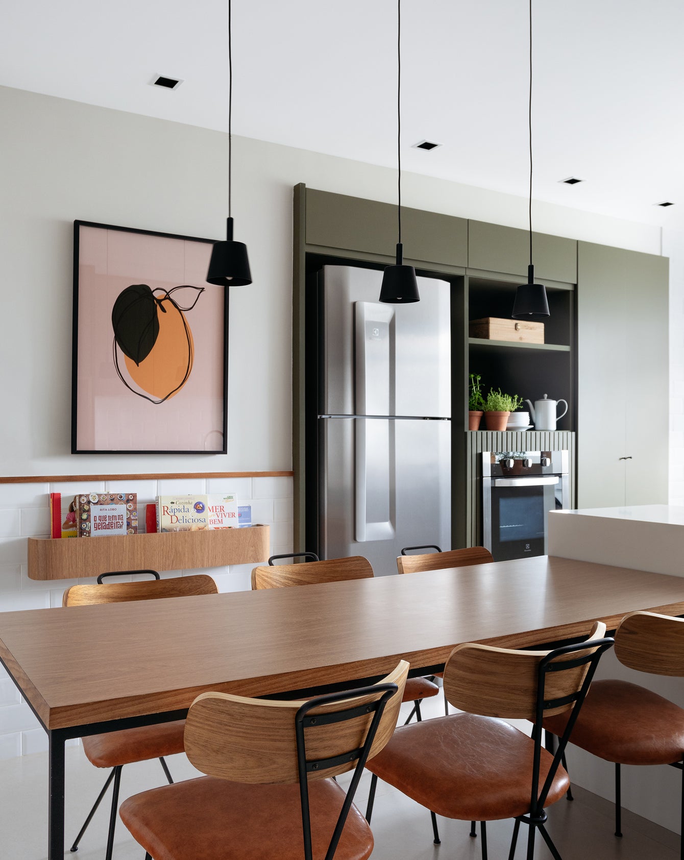 Quando se trata da indicação de itens de decoração, Ana Luisa e Gustavo são meticulosos. Em seus projetos de arquitetura e interiores, eles abrangem também parte da decoração - incluindo os quadros. Durante a fase de projeto, mais especificamente na etapa de visualização em 3D dos ambientes, a composição de quadros já permeia as ideias da dupla, permitindo que o cliente visualize o resultado e, posteriormente, adquira as artes nas dimensões e acabamento sugeridos pelos arquitetos.