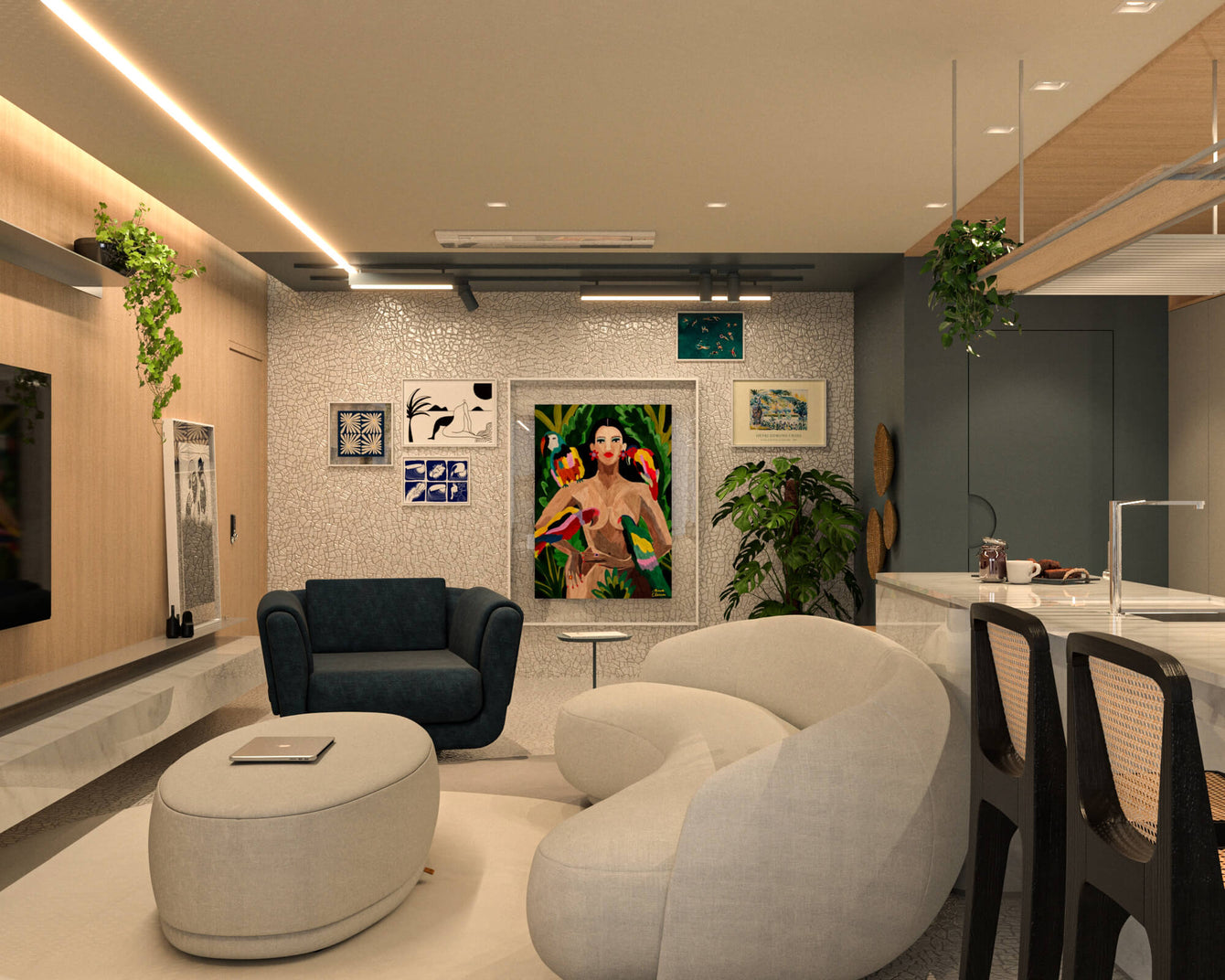 A equipe da Belan Arquitetura leva em consideração o gosto pessoal do cliente e fatores como cores, temas e sensações desejadas. Por exemplo, dos projetos que já foram escolhidos quadros da Obrah para compor a decoração, como na Casa #ABA, no Apto #MARÉ e no Escritório #VOCA, o direcionamento sempre foi a partir do gosto principal do cliente: o que ele deseja passar com a exposição dessa arte, a gama de cores utilizadas, se há um único tema específico ou temas que se interligam, ou ainda temas diversos que não tem conexão ou semelhança de tons e traços.