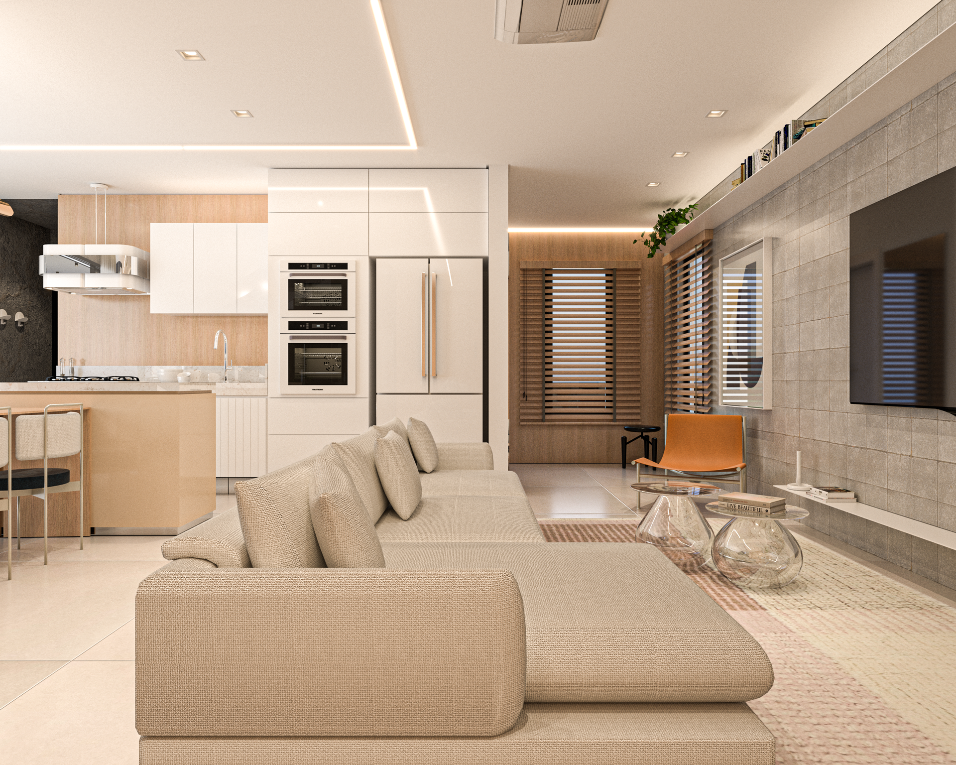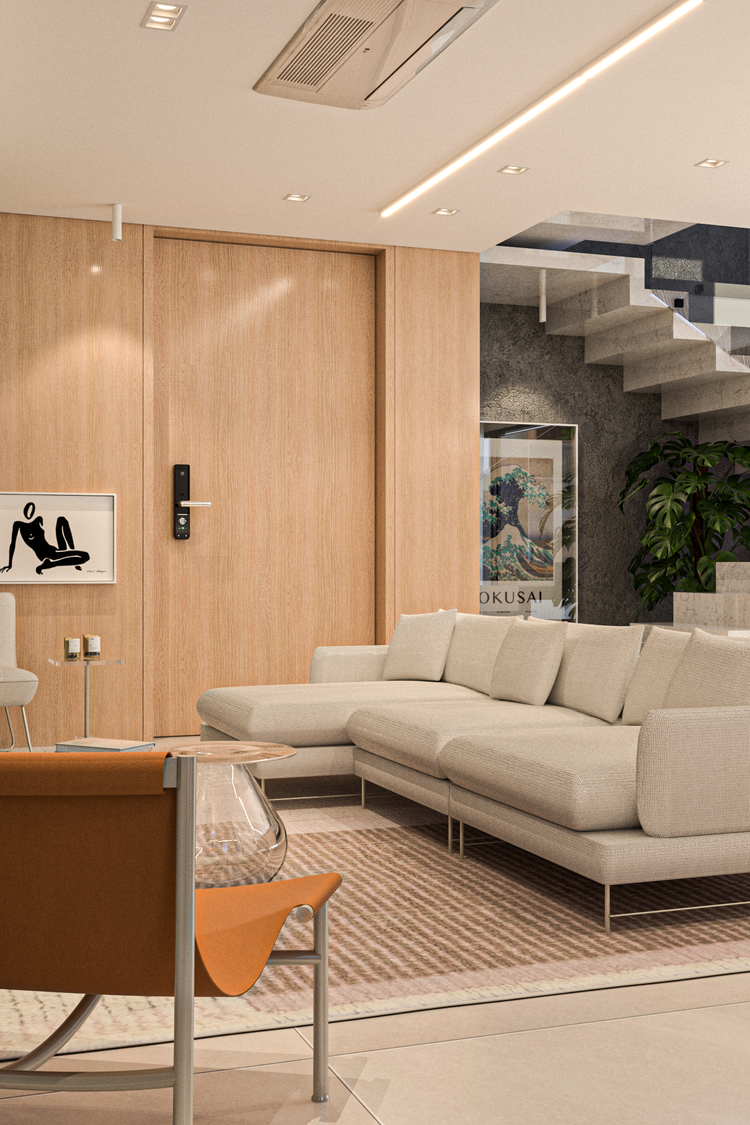 Após uma conversa inicial com o cliente para entender seus desejos e necessidades, o escritório assume a responsabilidade de indicar as melhores opções para criar a atmosfera desejada no projeto.
