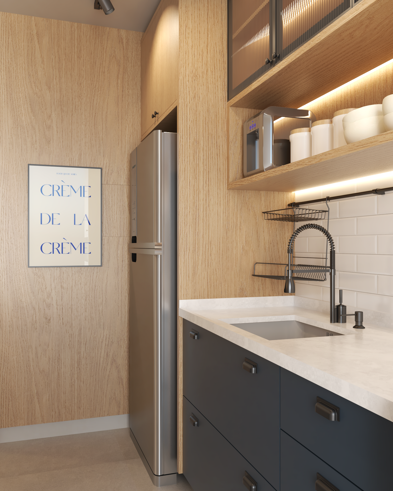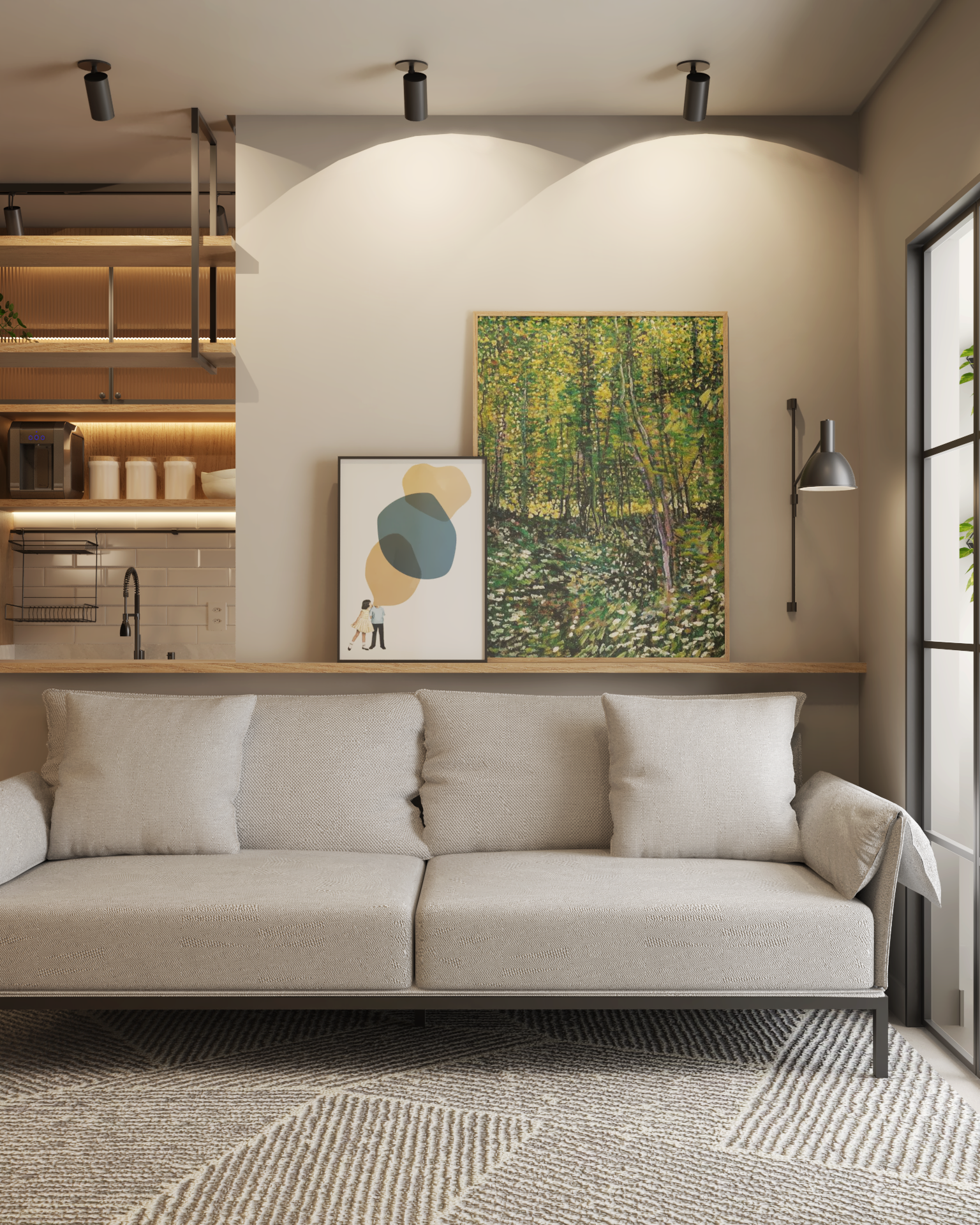 O Apartamento Garden LM é um exemplo concreto da filosofia do escritório: foi concebido para atender às necessidades de um casal jovem que almejava um ambiente descontraído, tranquilo e confortável para a prática de seus hobbies, tais como culinária e leitura. O projeto buscou criar um ambiente funcional e descontraído que facilitasse essas atividades de lazer.